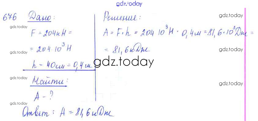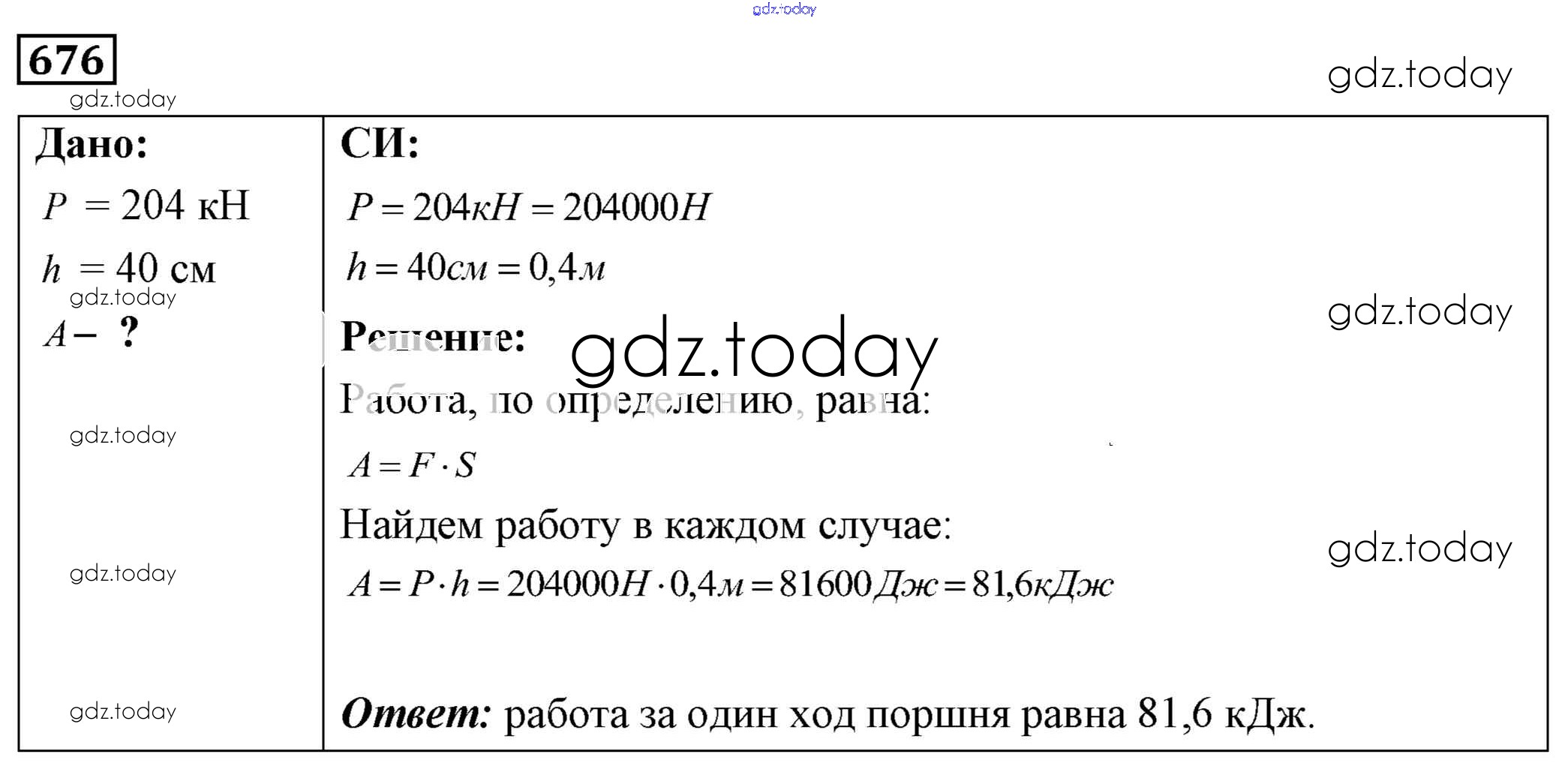 На страницах сайта gdz.today вы найдете учебный и вспомогательный материал, направленный на улучшения знаний школьной программы. ГДЗ - онлайн мир знаний Решение к заданиям 676 Сборнику задач по Физике для 7-9 класса Лукашик, Иванова Просвещение 2011