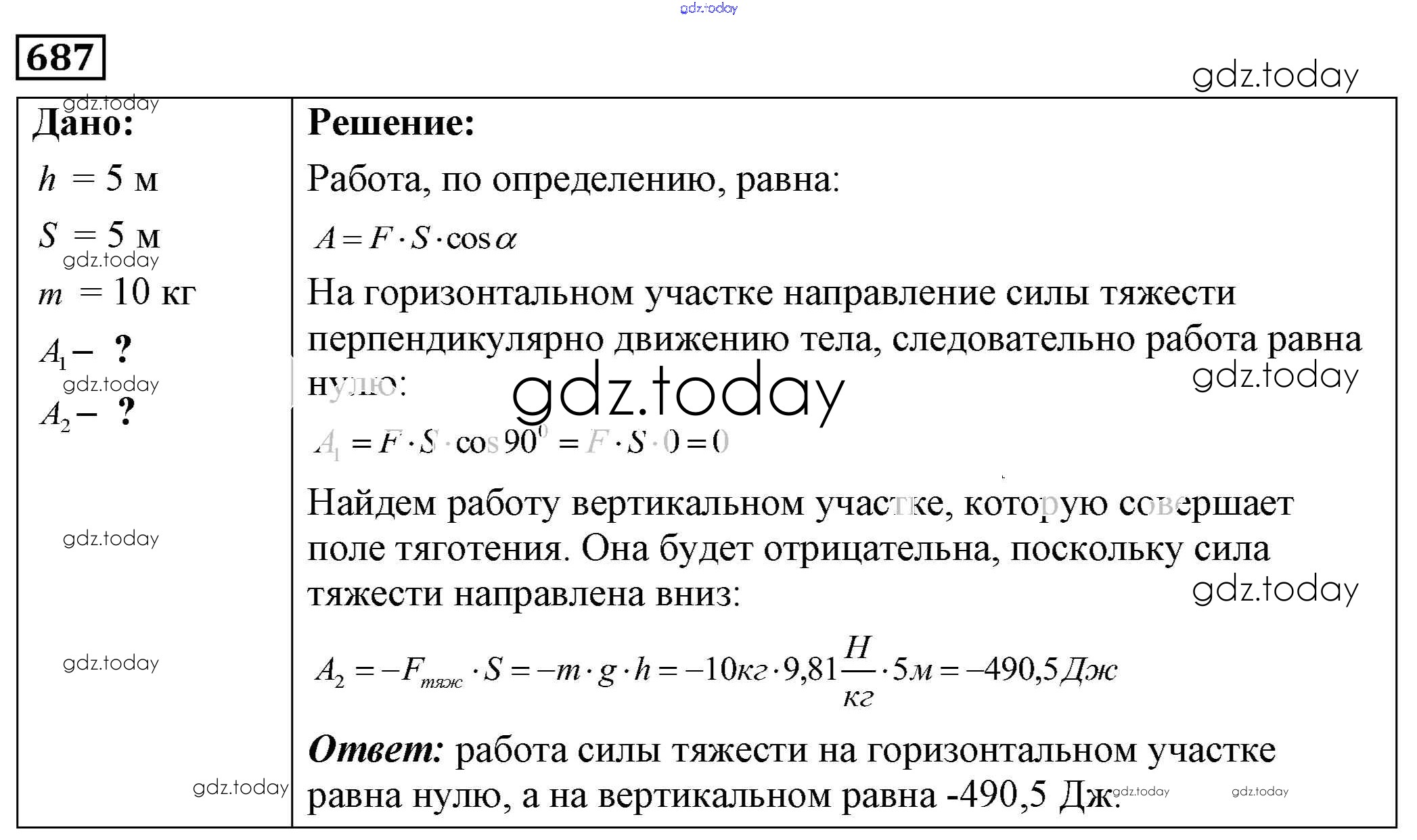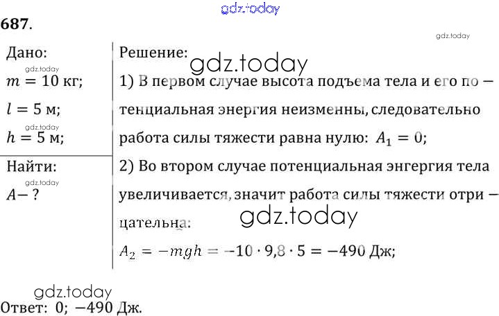 На страницах сайта gdz.today вы найдете учебный и вспомогательный материал, направленный на улучшения знаний школьной программы. ГДЗ - онлайн мир знаний Решение к заданиям 687 Сборнику задач по Физике для 7-9 класса Лукашик, Иванова Просвещение 2011