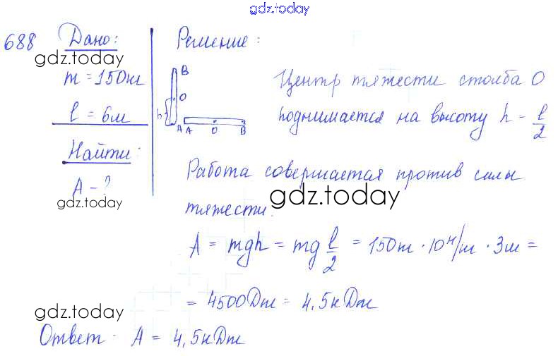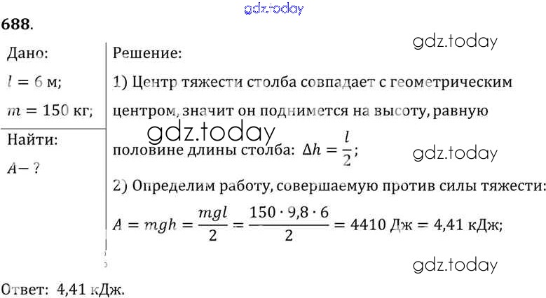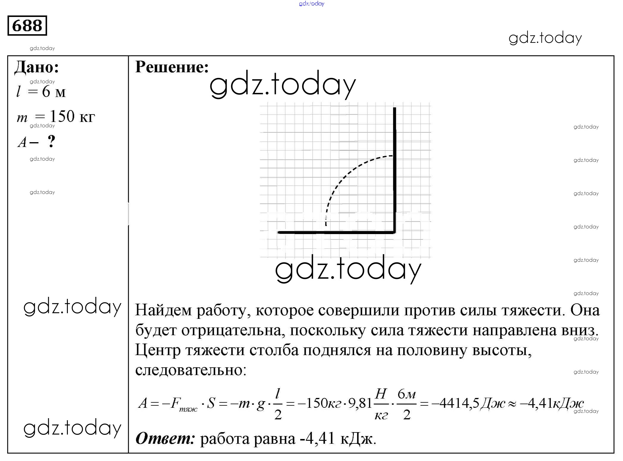На страницах сайта gdz.today вы найдете учебный и вспомогательный материал, направленный на улучшения знаний школьной программы. ГДЗ - онлайн мир знаний Решение к заданиям 688 Сборнику задач по Физике для 7-9 класса Лукашик, Иванова Просвещение 2011