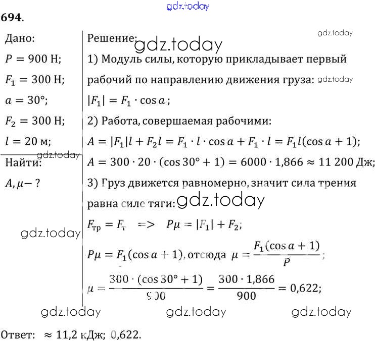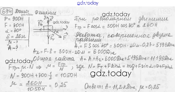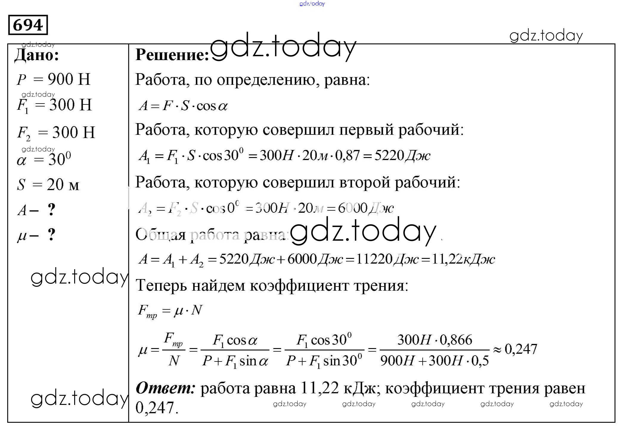 Ответы к Решение к заданиям 694 Сборнику задач по Физике для 7-9 класса Лукашик, Иванова Просвещение 2011