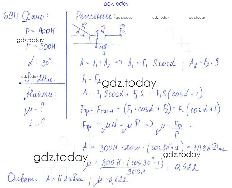 На страницах сайта gdz.today вы найдете учебный и вспомогательный материал, направленный на улучшения знаний школьной программы. ГДЗ - онлайн мир знаний Решение к заданиям 694 Сборнику задач по Физике для 7-9 класса Лукашик, Иванова Просвещение 2011