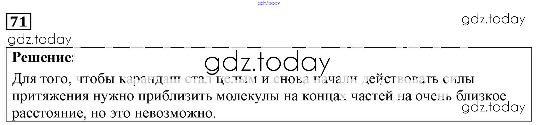 На страницах сайта gdz.today вы найдете учебный и вспомогательный материал, направленный на улучшения знаний школьной программы. ГДЗ - онлайн мир знаний Решение к заданиям 71 Сборнику задач по Физике для 7-9 класса Лукашик, Иванова Просвещение 2011