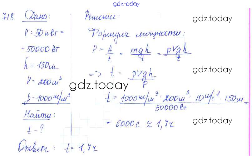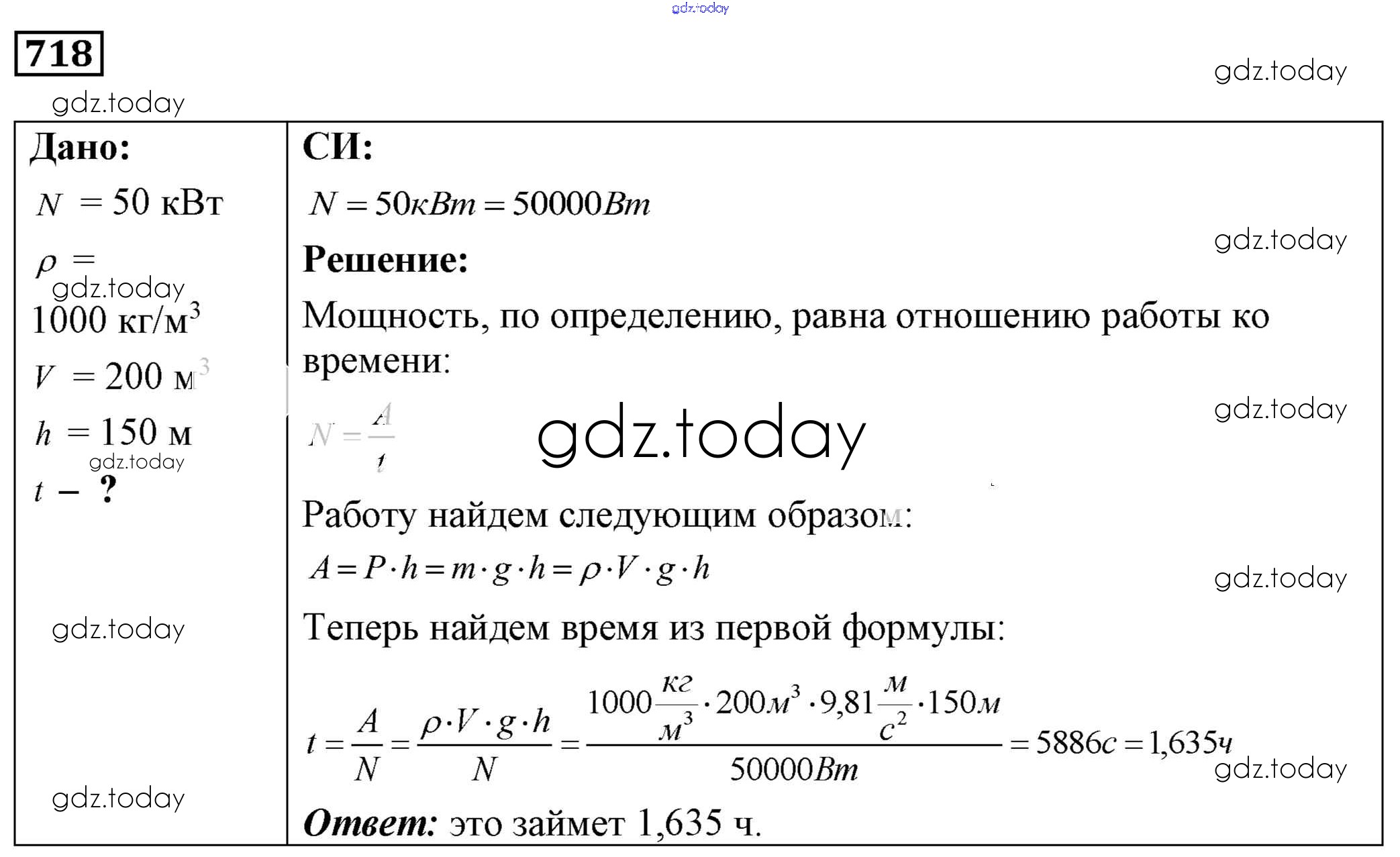 На страницах сайта gdz.today вы найдете учебный и вспомогательный материал, направленный на улучшения знаний школьной программы. ГДЗ - онлайн мир знаний Решение к заданиям 718 Сборнику задач по Физике для 7-9 класса Лукашик, Иванова Просвещение 2011