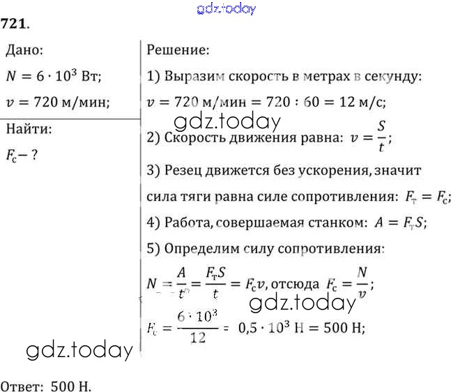 На страницах сайта gdz.today вы найдете учебный и вспомогательный материал, направленный на улучшения знаний школьной программы. ГДЗ - онлайн мир знаний Решение к заданиям 721 Сборнику задач по Физике для 7-9 класса Лукашик, Иванова Просвещение 2011