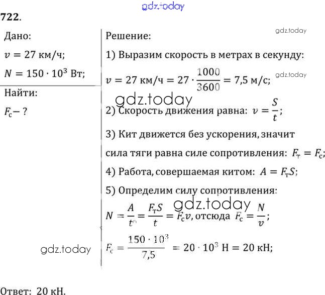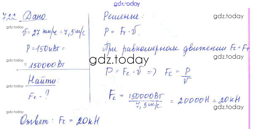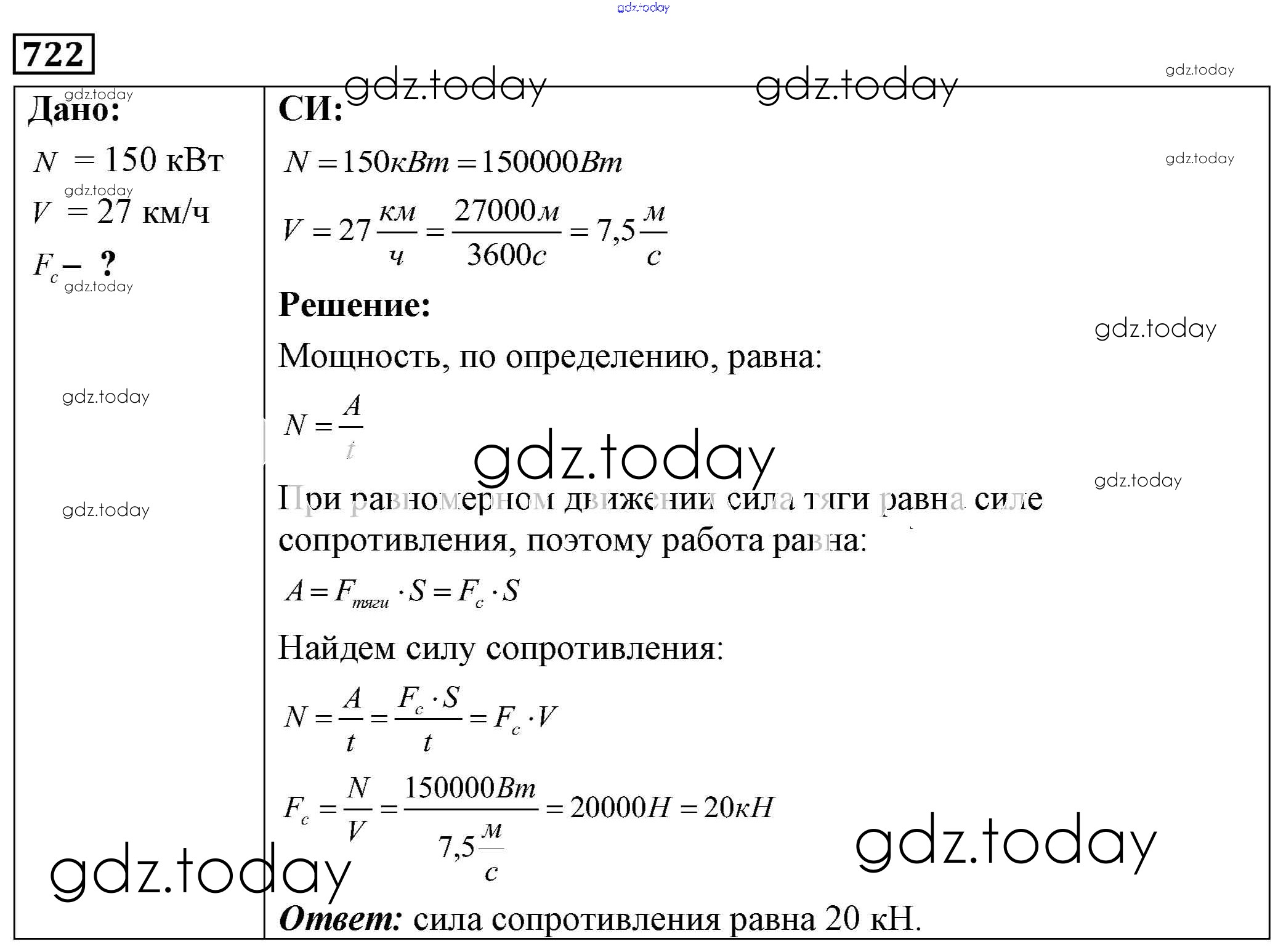 На страницах сайта gdz.today вы найдете учебный и вспомогательный материал, направленный на улучшения знаний школьной программы. ГДЗ - онлайн мир знаний Решение к заданиям 722 Сборнику задач по Физике для 7-9 класса Лукашик, Иванова Просвещение 2011