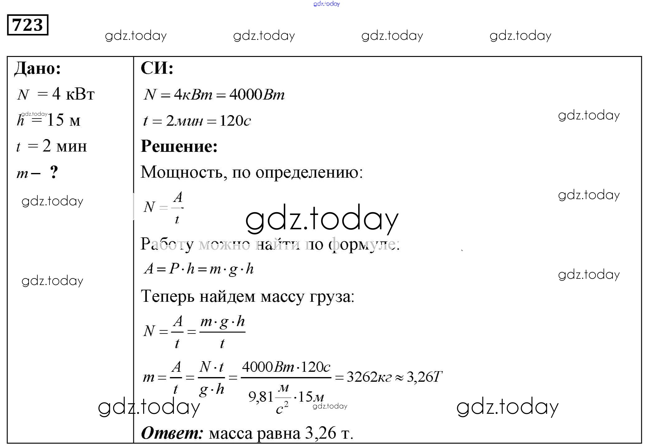 На страницах сайта gdz.today вы найдете учебный и вспомогательный материал, направленный на улучшения знаний школьной программы. ГДЗ - онлайн мир знаний Решение к заданиям 723 Сборнику задач по Физике для 7-9 класса Лукашик, Иванова Просвещение 2011