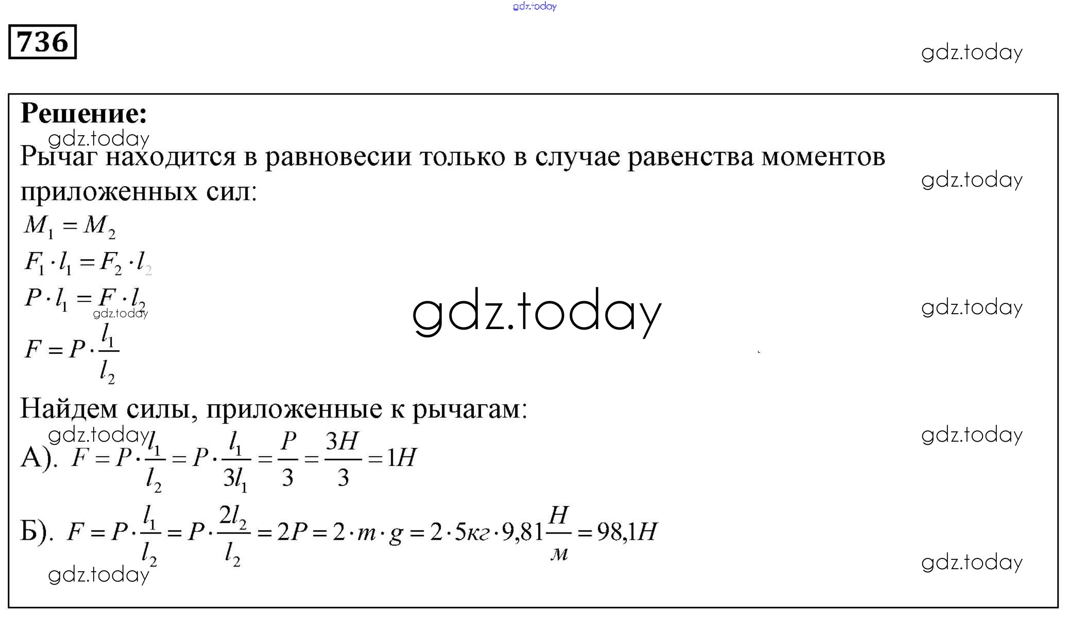 На страницах сайта gdz.today вы найдете учебный и вспомогательный материал, направленный на улучшения знаний школьной программы. ГДЗ - онлайн мир знаний Решение к заданиям 736 Сборнику задач по Физике для 7-9 класса Лукашик, Иванова Просвещение 2011