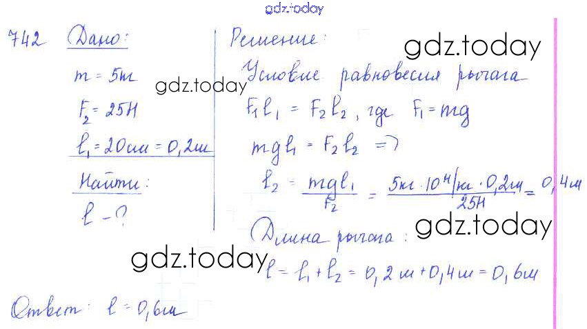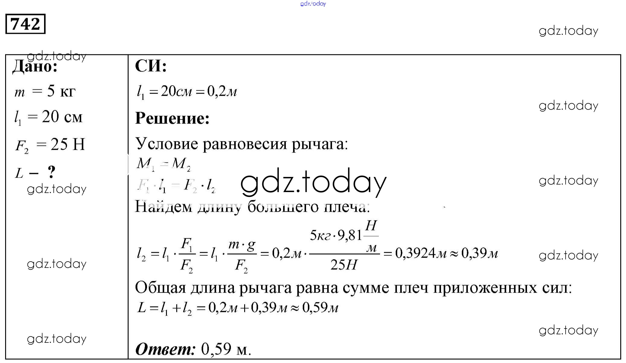 На страницах сайта gdz.today вы найдете учебный и вспомогательный материал, направленный на улучшения знаний школьной программы. ГДЗ - онлайн мир знаний Решение к заданиям 742 Сборнику задач по Физике для 7-9 класса Лукашик, Иванова Просвещение 2011
