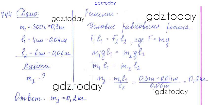 Ответы к Решение к заданиям 744 Сборнику задач по Физике для 7-9 класса Лукашик, Иванова Просвещение 2011
