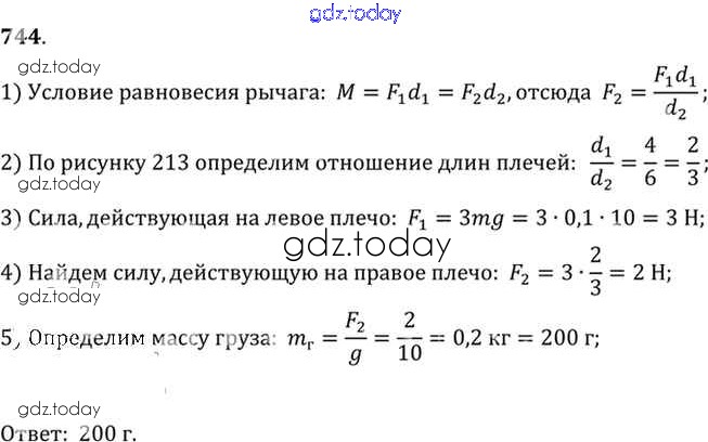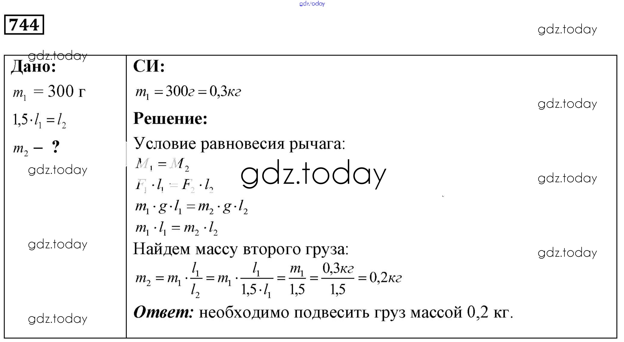 На страницах сайта gdz.today вы найдете учебный и вспомогательный материал, направленный на улучшения знаний школьной программы. ГДЗ - онлайн мир знаний Решение к заданиям 744 Сборнику задач по Физике для 7-9 класса Лукашик, Иванова Просвещение 2011
