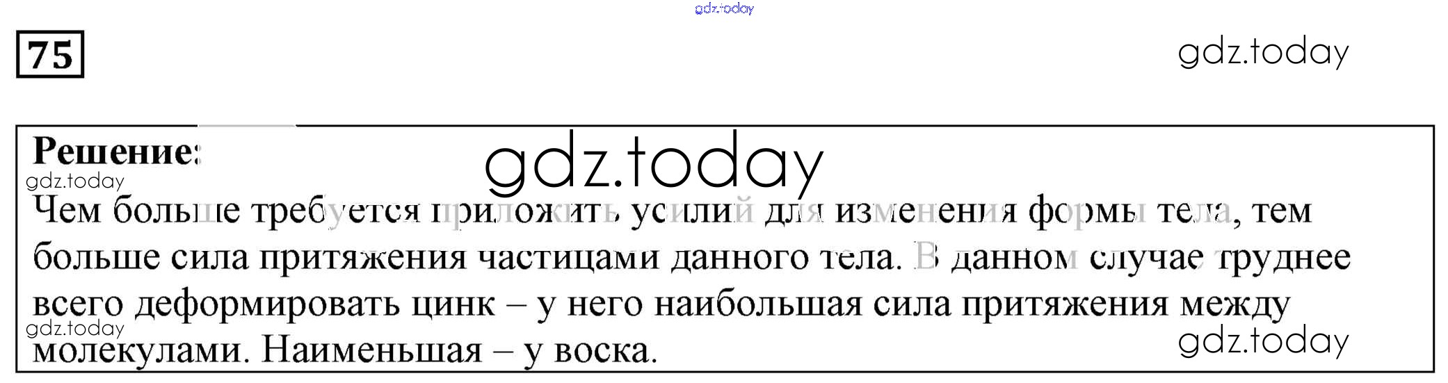 На страницах сайта gdz.today вы найдете учебный и вспомогательный материал, направленный на улучшения знаний школьной программы. ГДЗ - онлайн мир знаний Решение к заданиям 75 Сборнику задач по Физике для 7-9 класса Лукашик, Иванова Просвещение 2011
