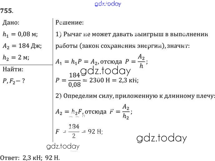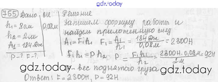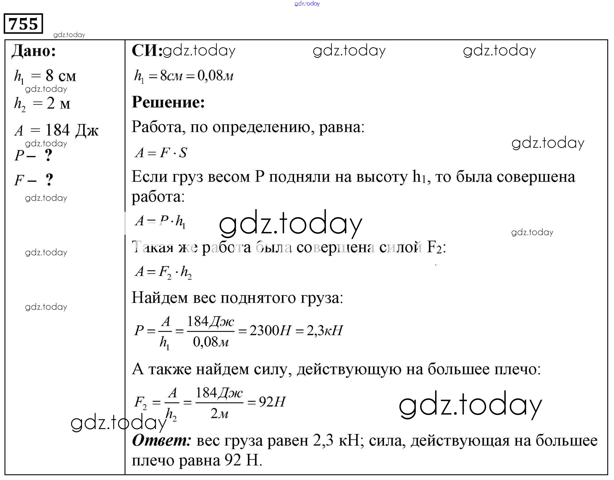 На страницах сайта gdz.today вы найдете учебный и вспомогательный материал, направленный на улучшения знаний школьной программы. ГДЗ - онлайн мир знаний Решение к заданиям 755 Сборнику задач по Физике для 7-9 класса Лукашик, Иванова Просвещение 2011