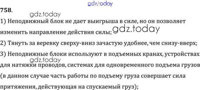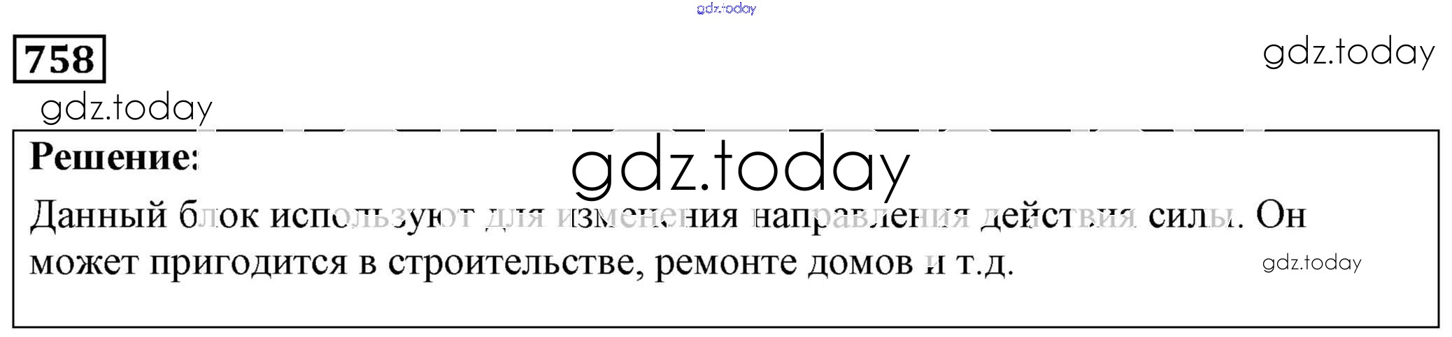 На страницах сайта gdz.today вы найдете учебный и вспомогательный материал, направленный на улучшения знаний школьной программы. ГДЗ - онлайн мир знаний Решение к заданиям 758 Сборнику задач по Физике для 7-9 класса Лукашик, Иванова Просвещение 2011
