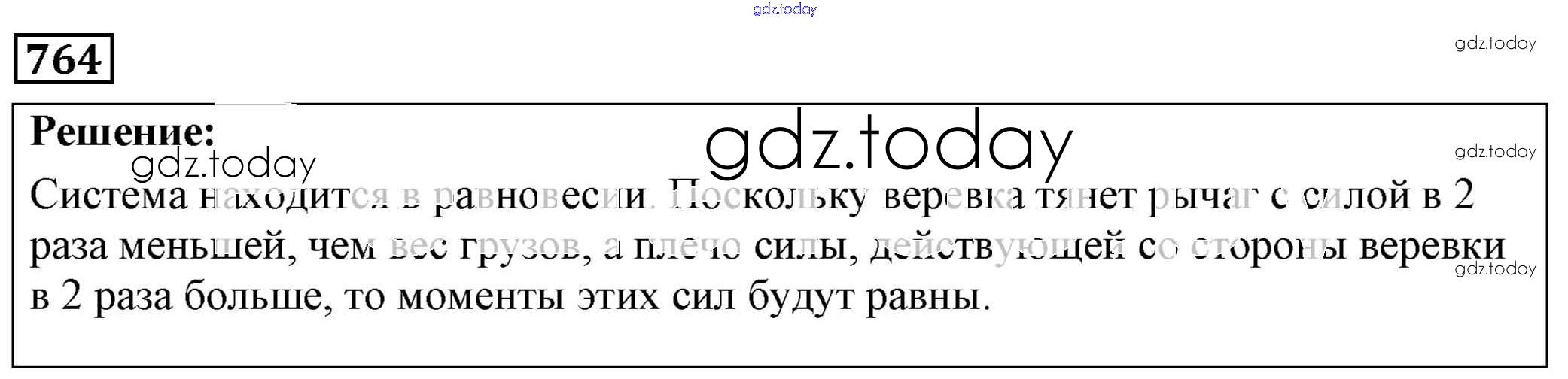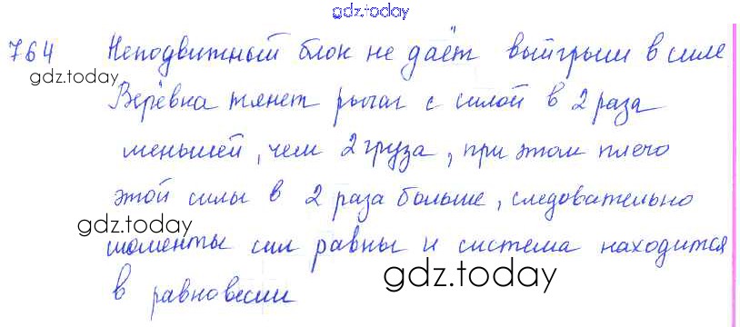 На страницах сайта gdz.today вы найдете учебный и вспомогательный материал, направленный на улучшения знаний школьной программы. ГДЗ - онлайн мир знаний Решение к заданиям 764 Сборнику задач по Физике для 7-9 класса Лукашик, Иванова Просвещение 2011