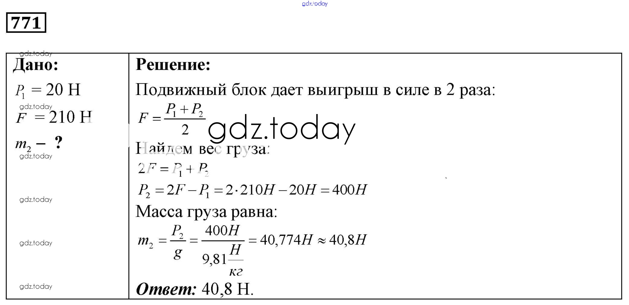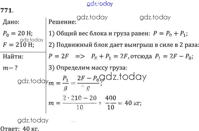 На страницах сайта gdz.today вы найдете учебный и вспомогательный материал, направленный на улучшения знаний школьной программы. ГДЗ - онлайн мир знаний Решение к заданиям 771 Сборнику задач по Физике для 7-9 класса Лукашик, Иванова Просвещение 2011