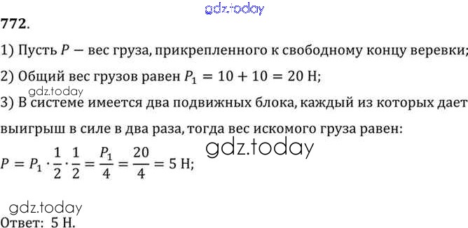 Ответы к Решение к заданиям 772 Сборнику задач по Физике для 7-9 класса Лукашик, Иванова Просвещение 2011