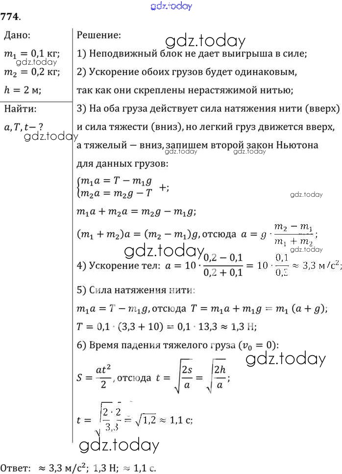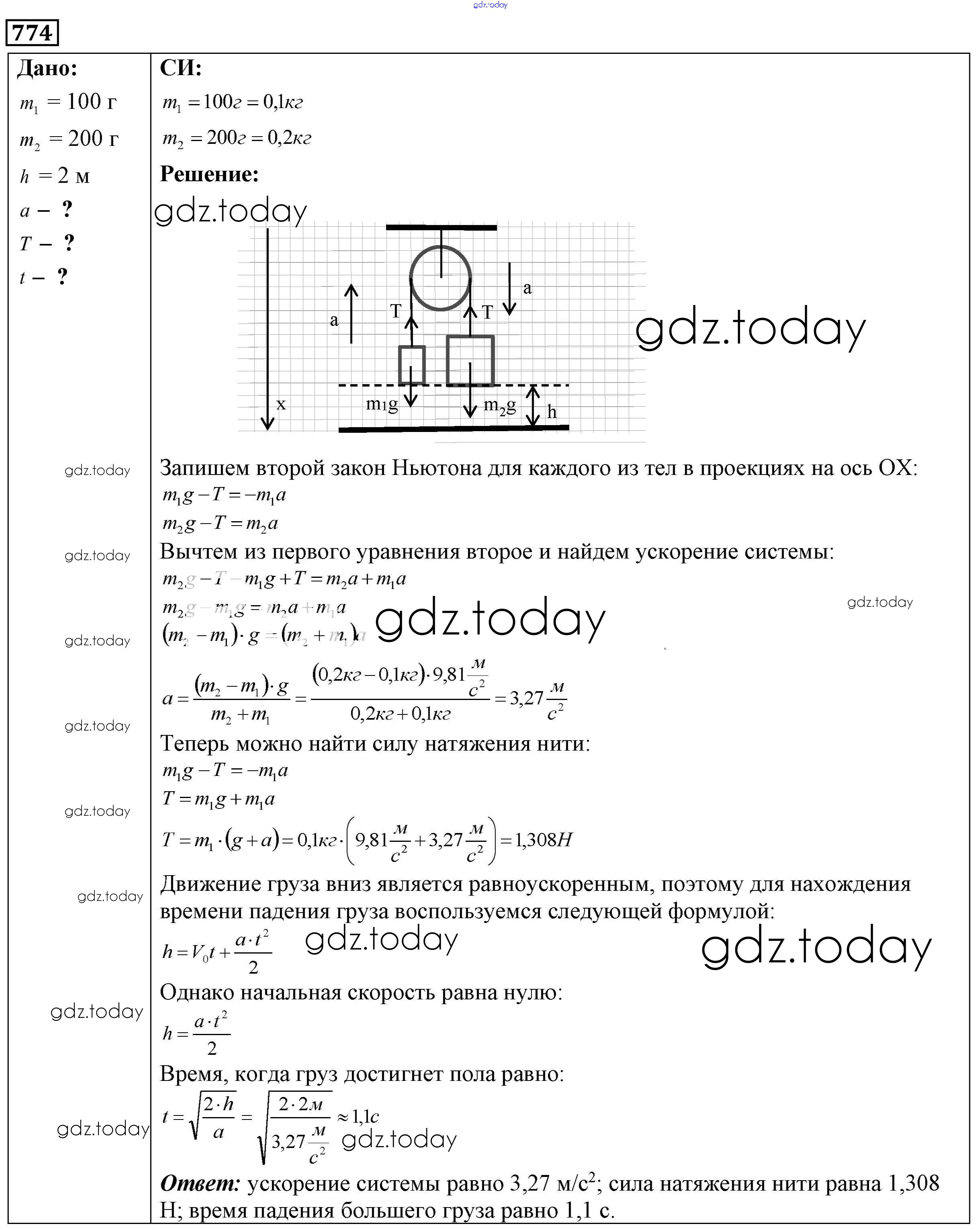 На страницах сайта gdz.today вы найдете учебный и вспомогательный материал, направленный на улучшения знаний школьной программы. ГДЗ - онлайн мир знаний Решение к заданиям 774 Сборнику задач по Физике для 7-9 класса Лукашик, Иванова Просвещение 2011