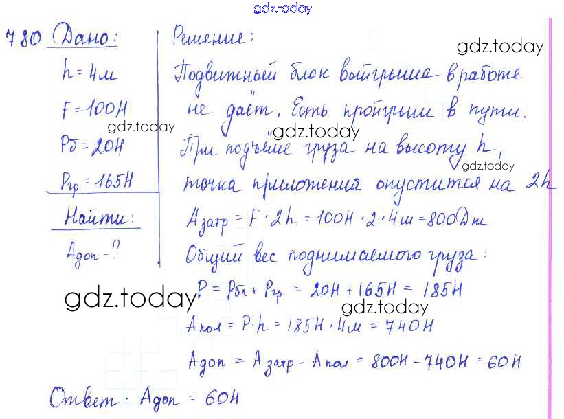 Ответы к Решение к заданиям 780 Сборнику задач по Физике для 7-9 класса Лукашик, Иванова Просвещение 2011