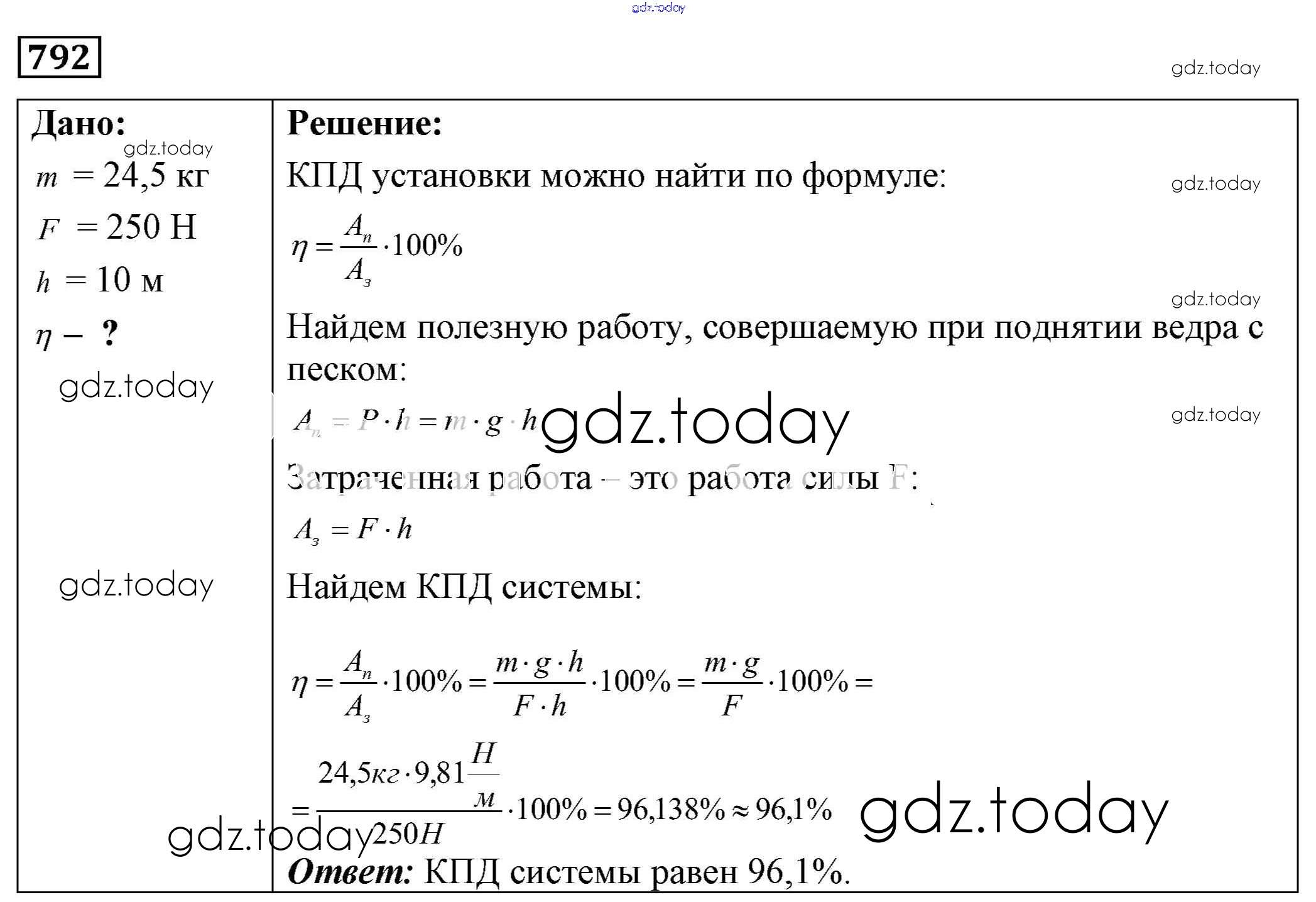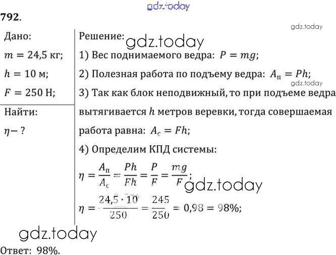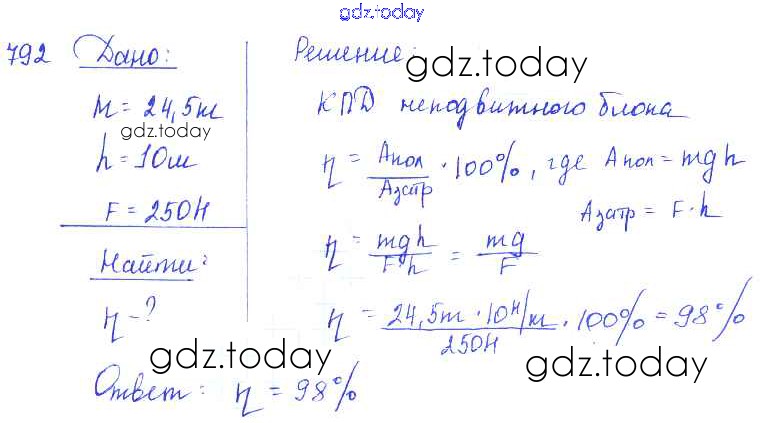 Ответы к Решение к заданиям 792 Сборнику задач по Физике для 7-9 класса Лукашик, Иванова Просвещение 2011
