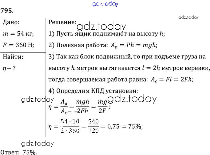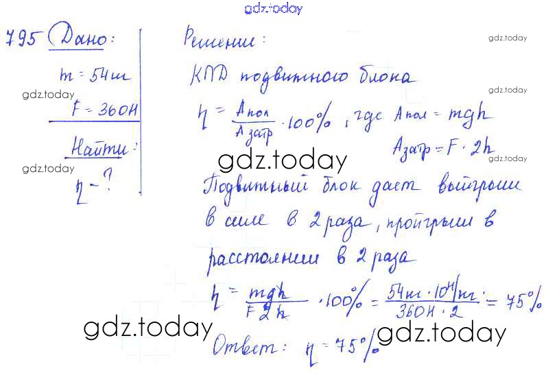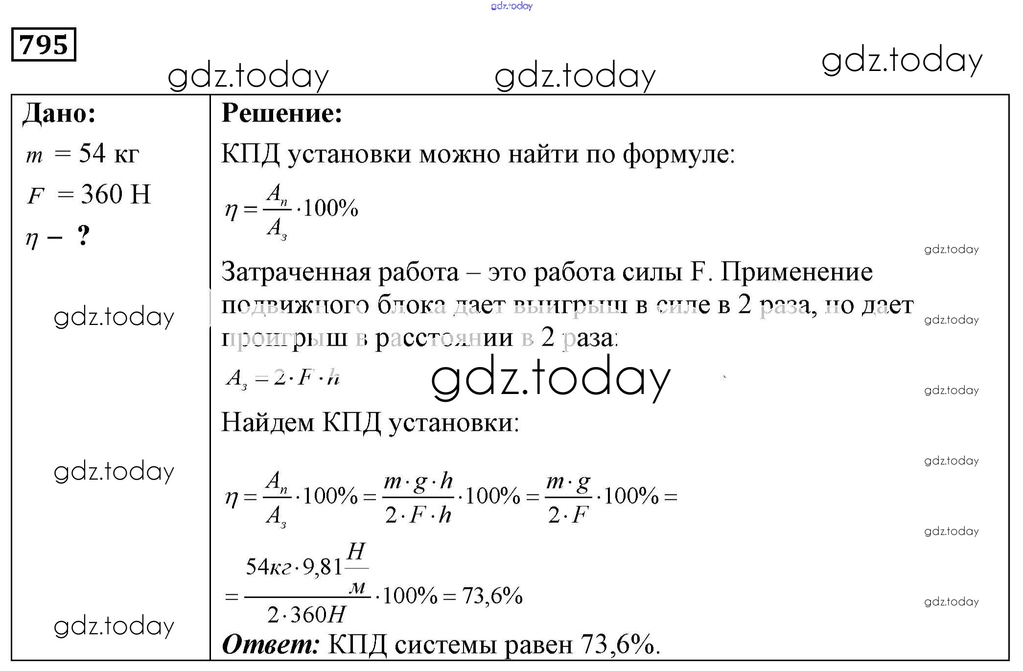 Ответы к Решение к заданиям 795 Сборнику задач по Физике для 7-9 класса Лукашик, Иванова Просвещение 2011