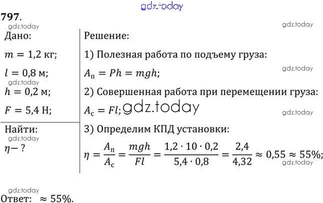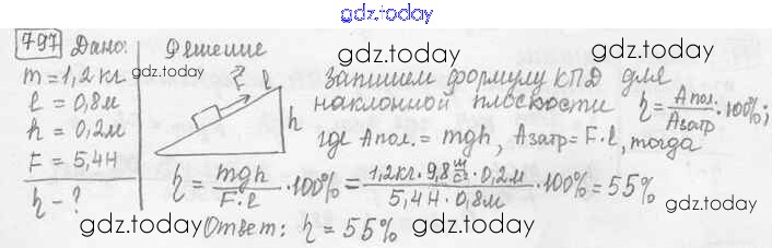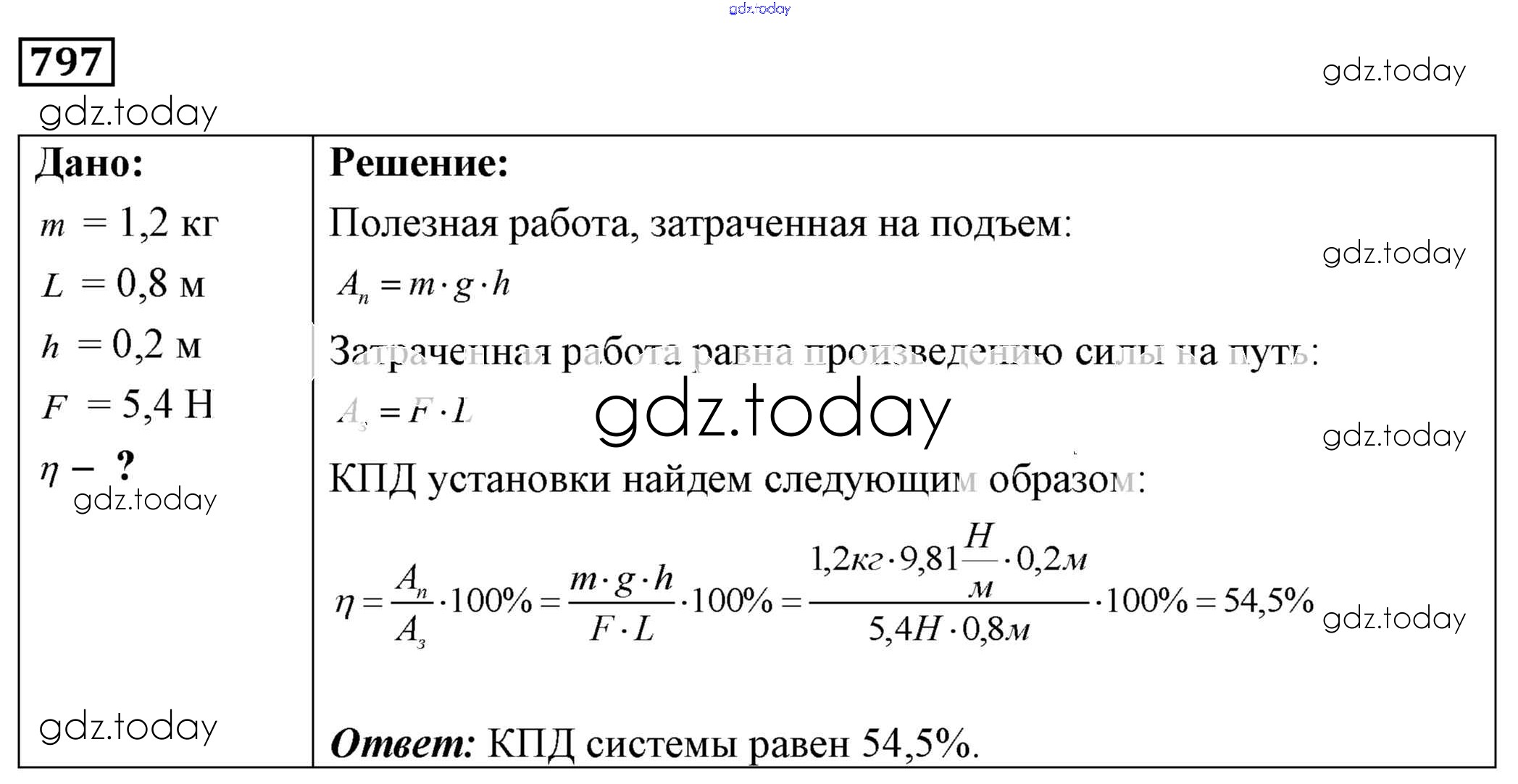 На страницах сайта gdz.today вы найдете учебный и вспомогательный материал, направленный на улучшения знаний школьной программы. ГДЗ - онлайн мир знаний Решение к заданиям 797 Сборнику задач по Физике для 7-9 класса Лукашик, Иванова Просвещение 2011