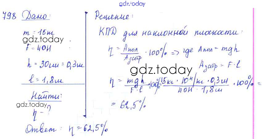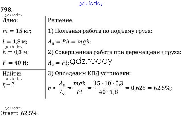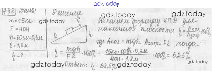 На страницах сайта gdz.today вы найдете учебный и вспомогательный материал, направленный на улучшения знаний школьной программы. ГДЗ - онлайн мир знаний Решение к заданиям 798 Сборнику задач по Физике для 7-9 класса Лукашик, Иванова Просвещение 2011
