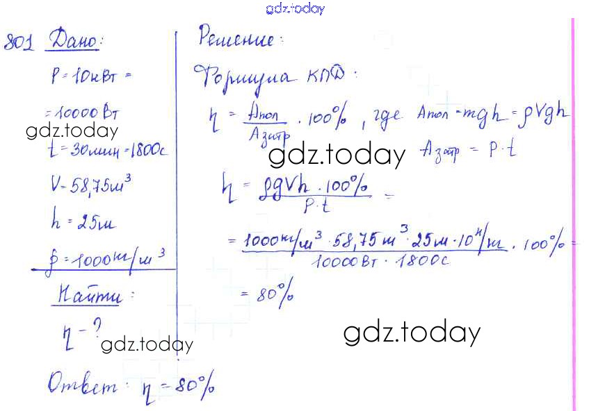 Ответы к Решение к заданиям 801 Сборнику задач по Физике для 7-9 класса Лукашик, Иванова Просвещение 2011