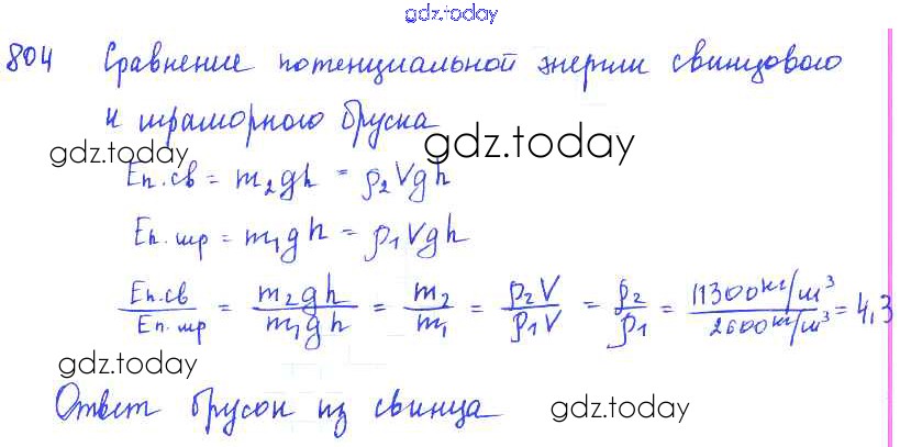 Ответы к Решение к заданиям 804 Сборнику задач по Физике для 7-9 класса Лукашик, Иванова Просвещение 2011