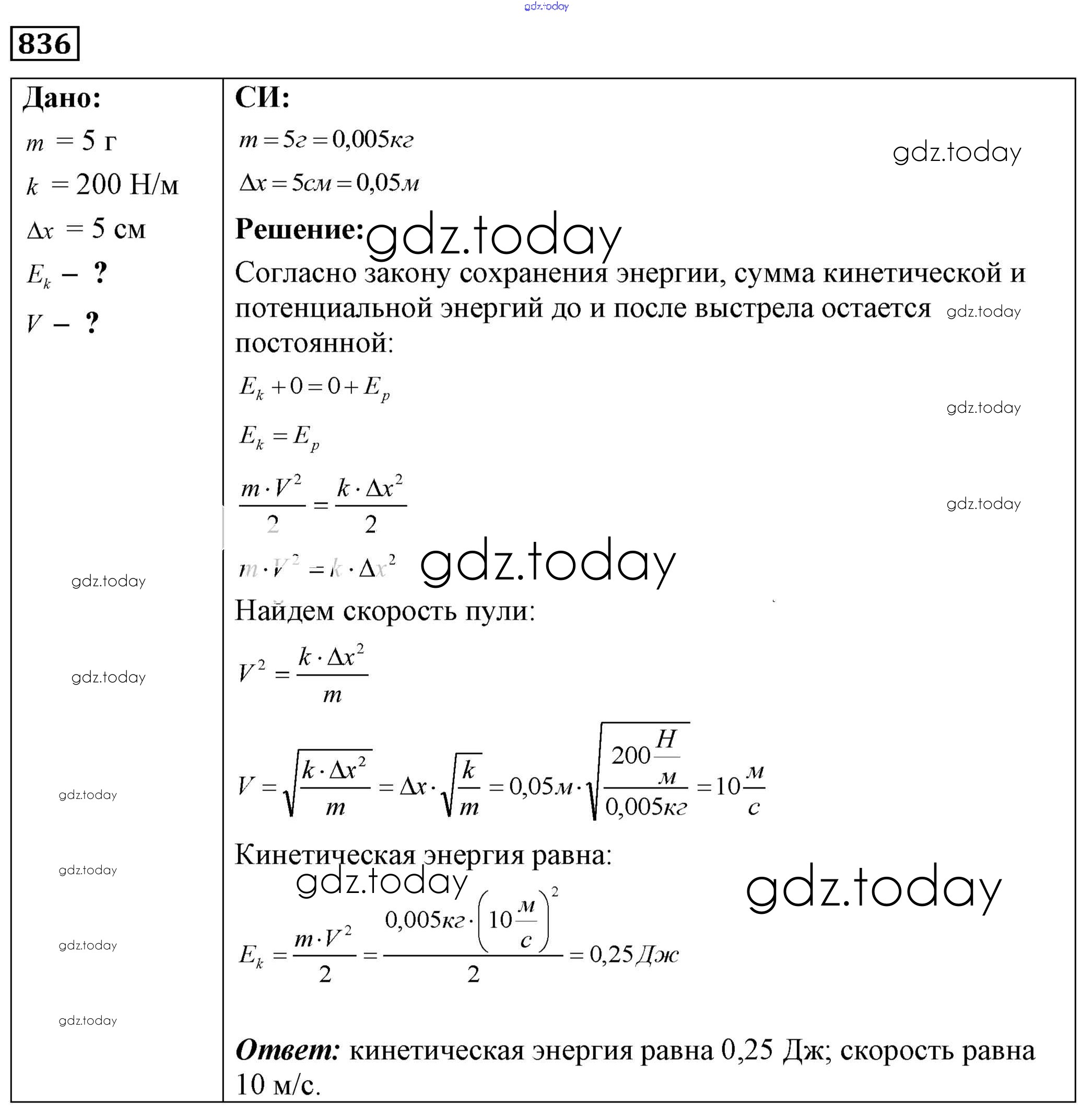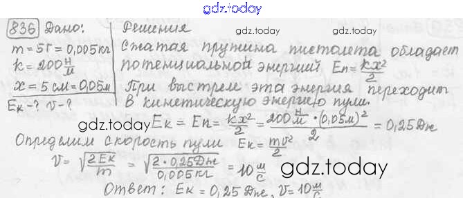 На страницах сайта gdz.today вы найдете учебный и вспомогательный материал, направленный на улучшения знаний школьной программы. ГДЗ - онлайн мир знаний Решение к заданиям 836 Сборнику задач по Физике для 7-9 класса Лукашик, Иванова Просвещение 2011