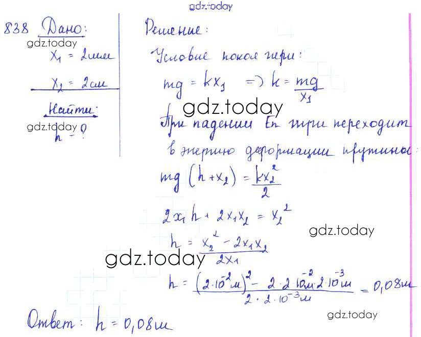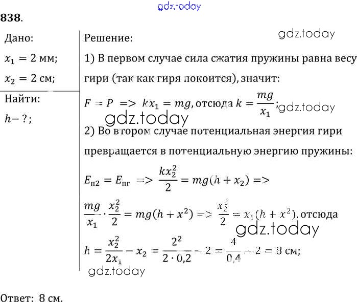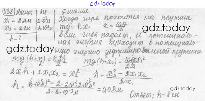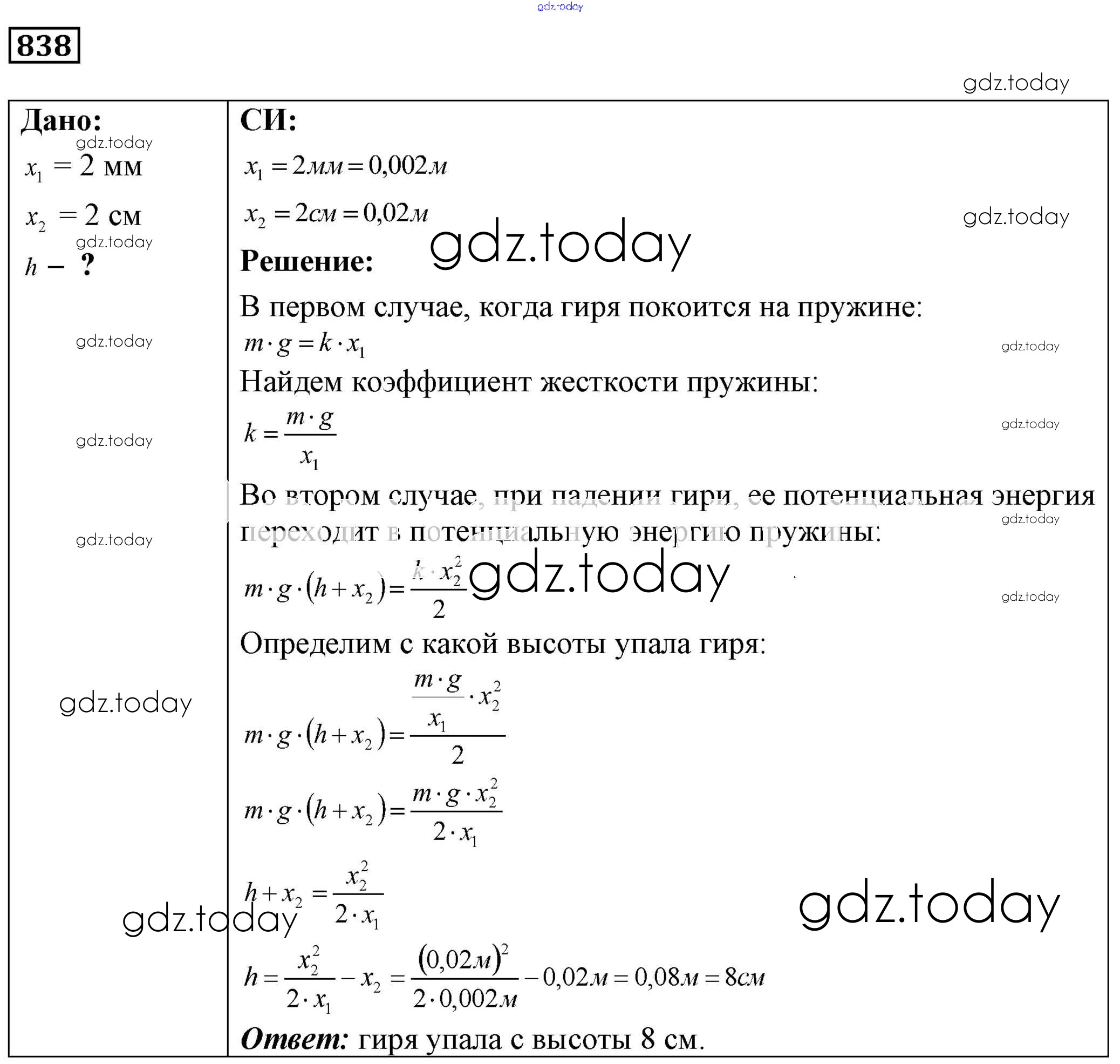 На страницах сайта gdz.today вы найдете учебный и вспомогательный материал, направленный на улучшения знаний школьной программы. ГДЗ - онлайн мир знаний Решение к заданиям 838 Сборнику задач по Физике для 7-9 класса Лукашик, Иванова Просвещение 2011