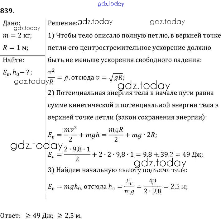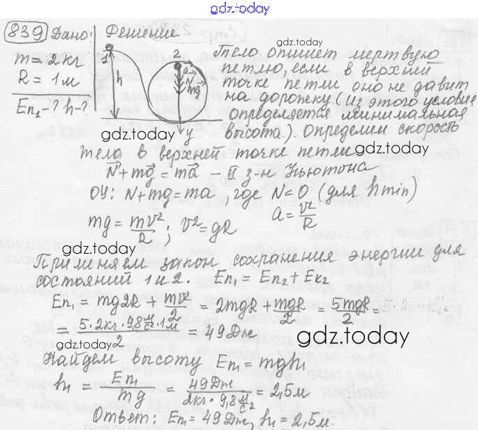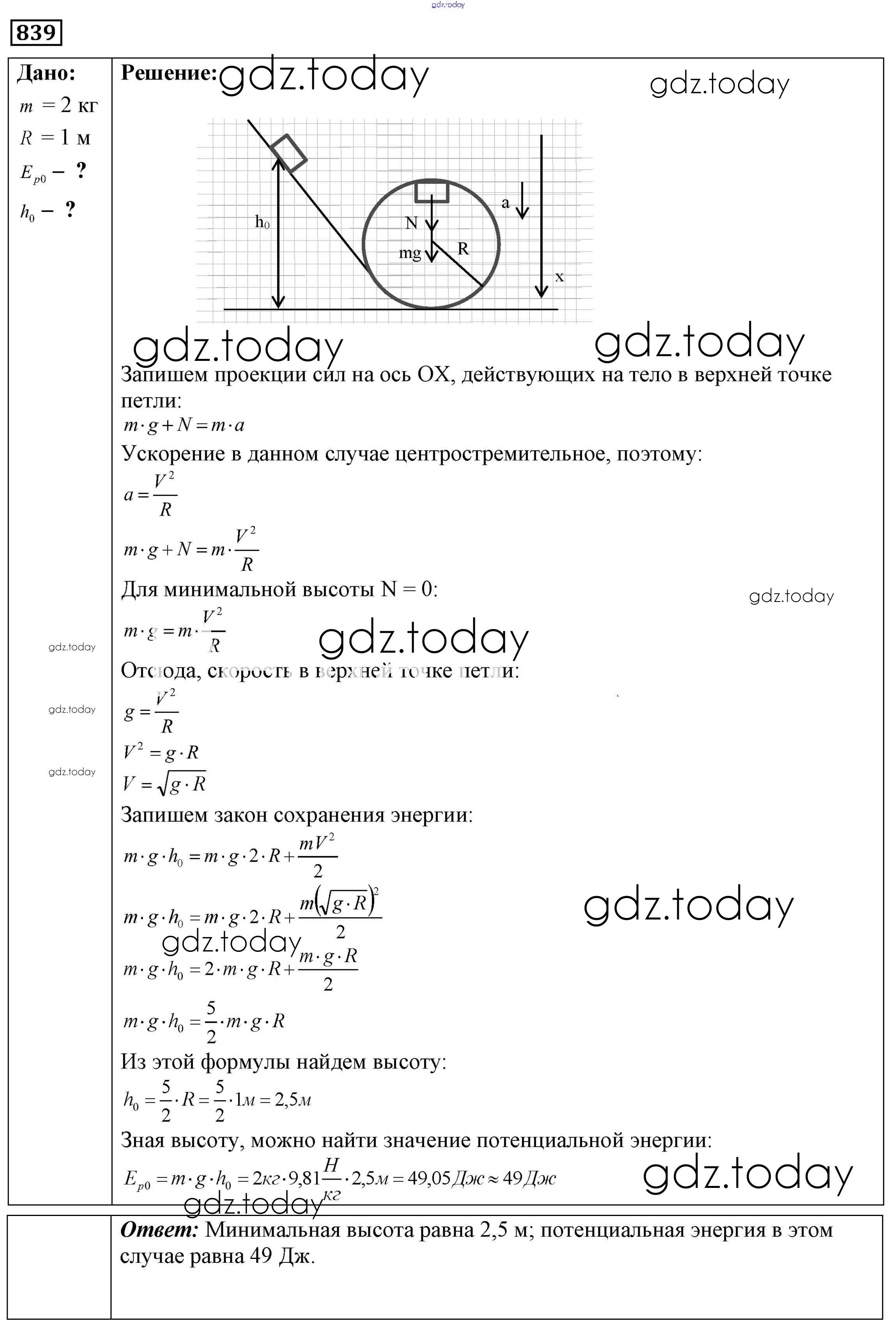 На страницах сайта gdz.today вы найдете учебный и вспомогательный материал, направленный на улучшения знаний школьной программы. ГДЗ - онлайн мир знаний Решение к заданиям 839 Сборнику задач по Физике для 7-9 класса Лукашик, Иванова Просвещение 2011