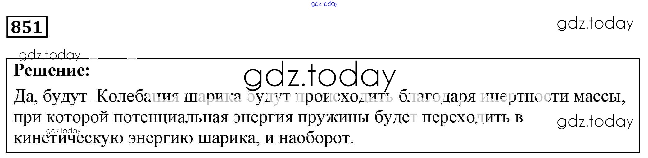 На страницах сайта gdz.today вы найдете учебный и вспомогательный материал, направленный на улучшения знаний школьной программы. ГДЗ - онлайн мир знаний Решение к заданиям 851 Сборнику задач по Физике для 7-9 класса Лукашик, Иванова Просвещение 2011
