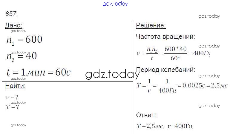 На страницах сайта gdz.today вы найдете учебный и вспомогательный материал, направленный на улучшения знаний школьной программы. ГДЗ - онлайн мир знаний Решение к заданиям 857 Сборнику задач по Физике для 7-9 класса Лукашик, Иванова Просвещение 2011