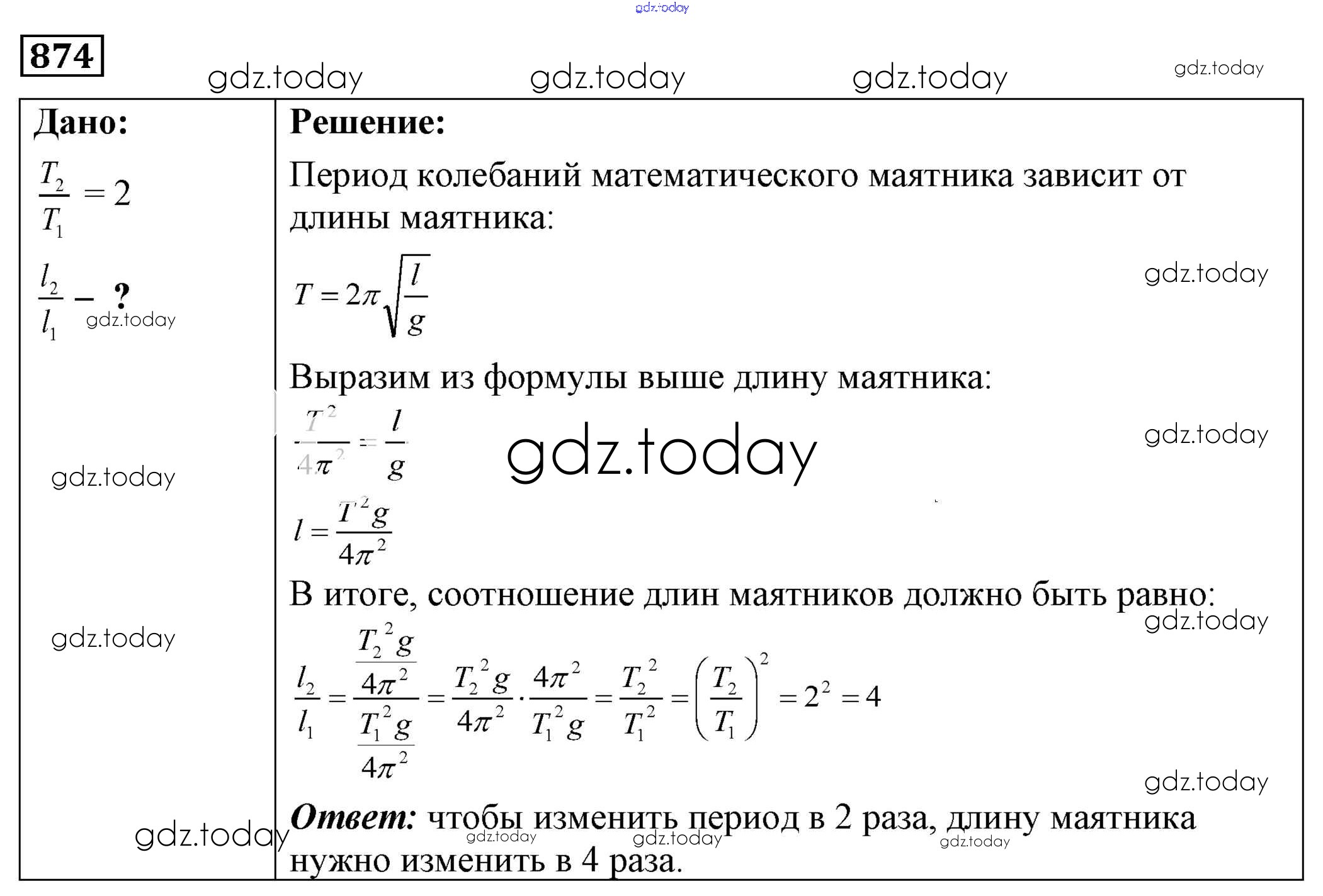 На страницах сайта gdz.today вы найдете учебный и вспомогательный материал, направленный на улучшения знаний школьной программы. ГДЗ - онлайн мир знаний Решение к заданиям 874 Сборнику задач по Физике для 7-9 класса Лукашик, Иванова Просвещение 2011