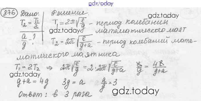 Ответы к Решение к заданиям 876 Сборнику задач по Физике для 7-9 класса Лукашик, Иванова Просвещение 2011