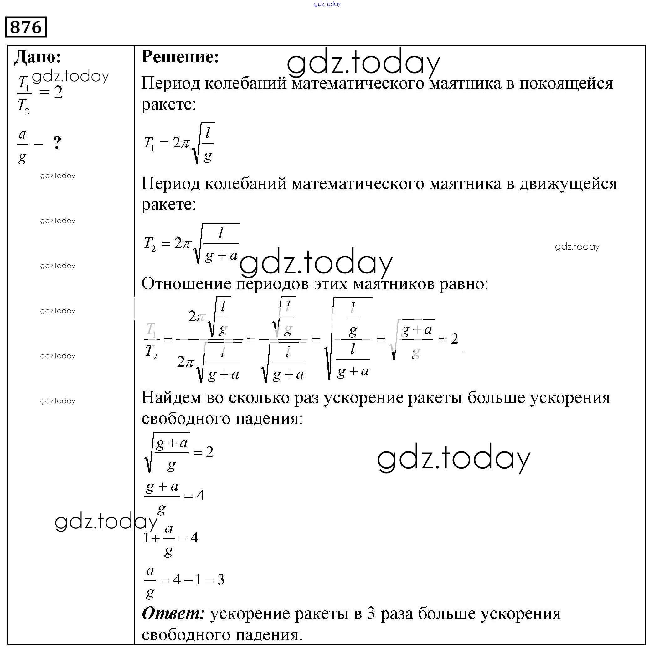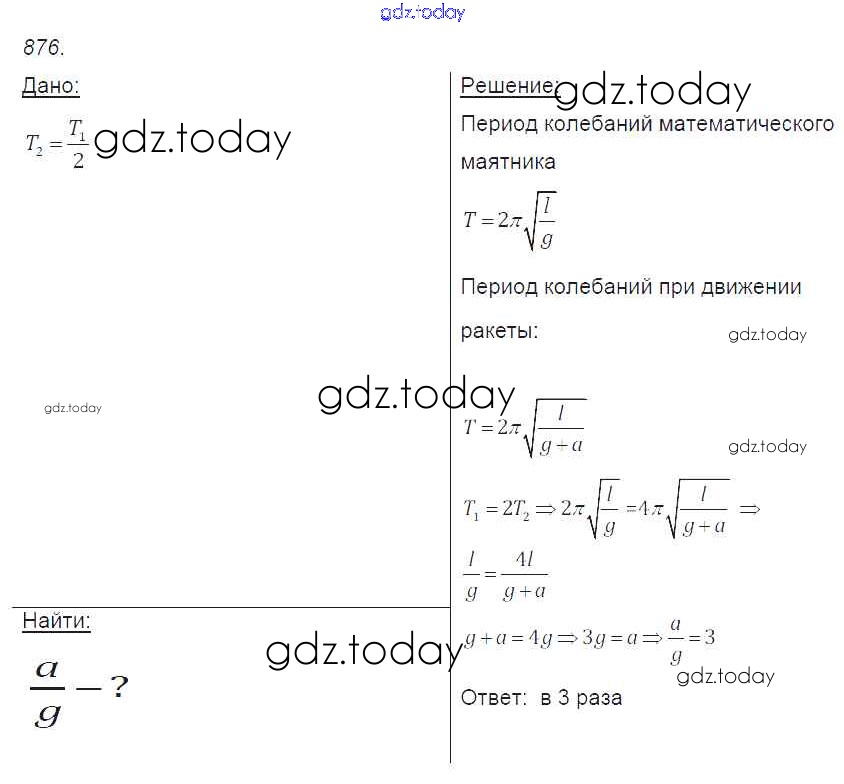 На страницах сайта gdz.today вы найдете учебный и вспомогательный материал, направленный на улучшения знаний школьной программы. ГДЗ - онлайн мир знаний Решение к заданиям 876 Сборнику задач по Физике для 7-9 класса Лукашик, Иванова Просвещение 2011