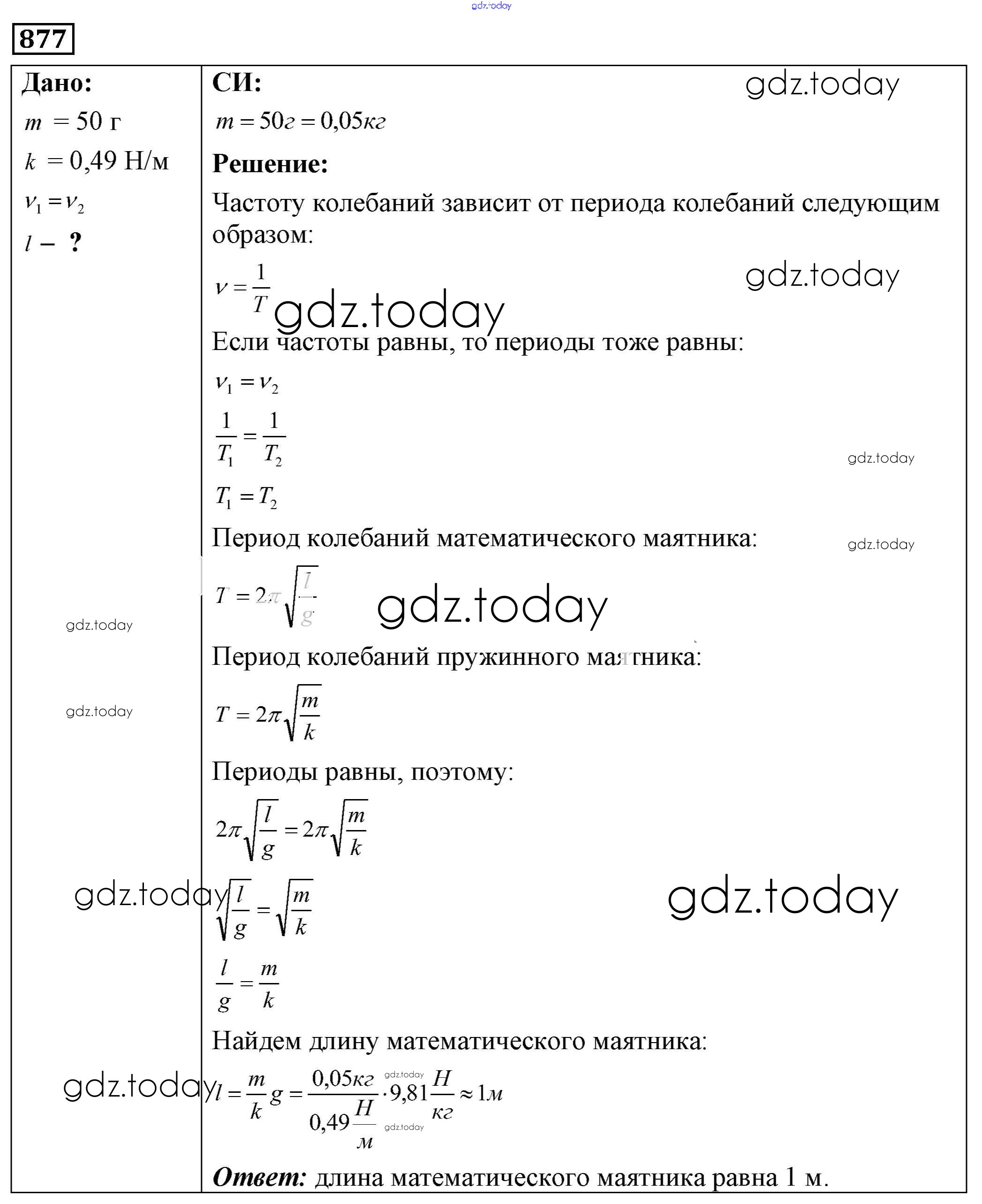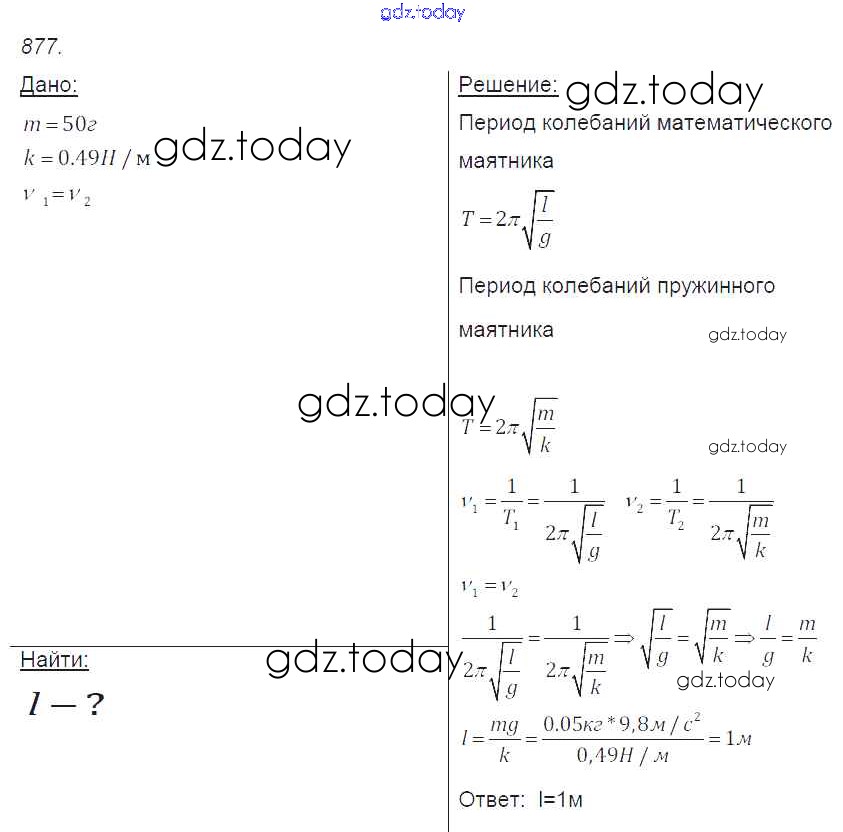 На страницах сайта gdz.today вы найдете учебный и вспомогательный материал, направленный на улучшения знаний школьной программы. ГДЗ - онлайн мир знаний Решение к заданиям 877 Сборнику задач по Физике для 7-9 класса Лукашик, Иванова Просвещение 2011
