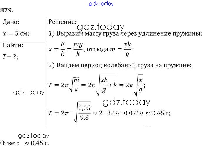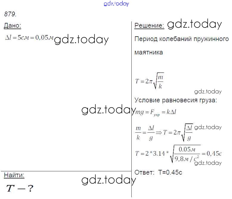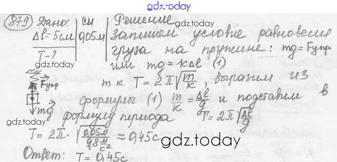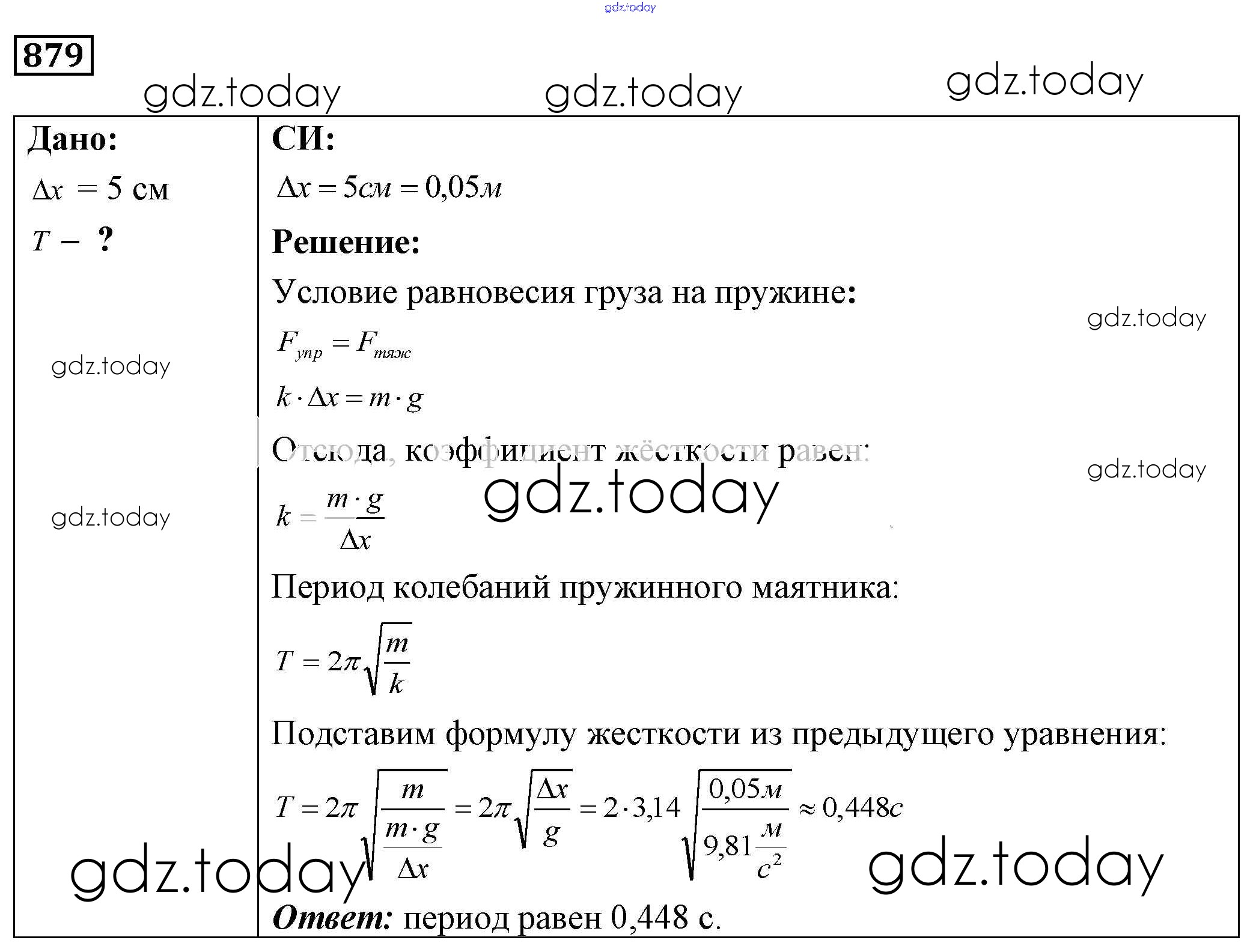 На страницах сайта gdz.today вы найдете учебный и вспомогательный материал, направленный на улучшения знаний школьной программы. ГДЗ - онлайн мир знаний Решение к заданиям 879 Сборнику задач по Физике для 7-9 класса Лукашик, Иванова Просвещение 2011