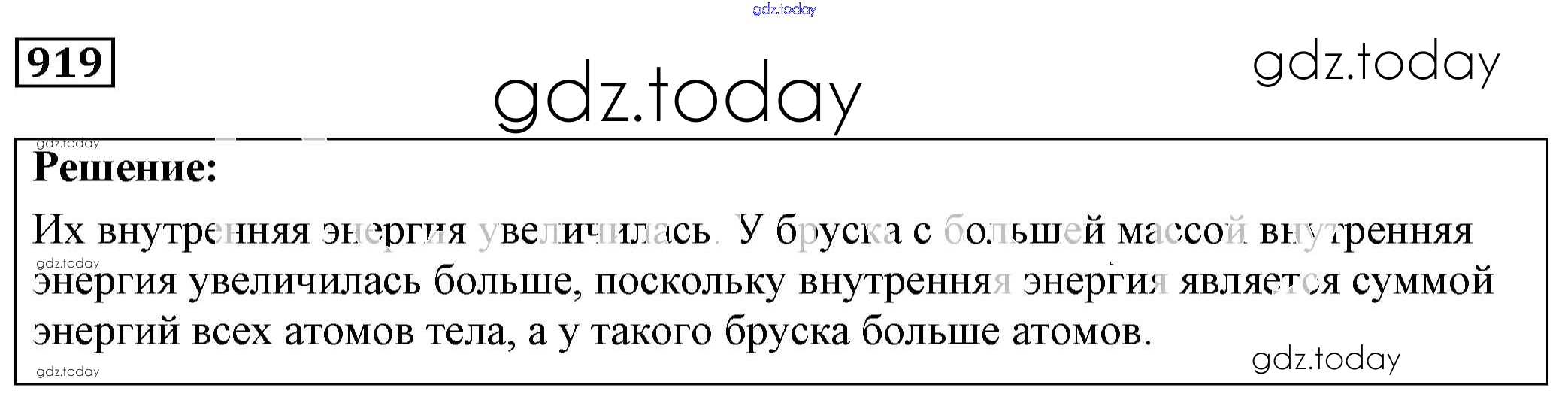 На страницах сайта gdz.today вы найдете учебный и вспомогательный материал, направленный на улучшения знаний школьной программы. ГДЗ - онлайн мир знаний Решение к заданиям 919 Сборнику задач по Физике для 7-9 класса Лукашик, Иванова Просвещение 2011
