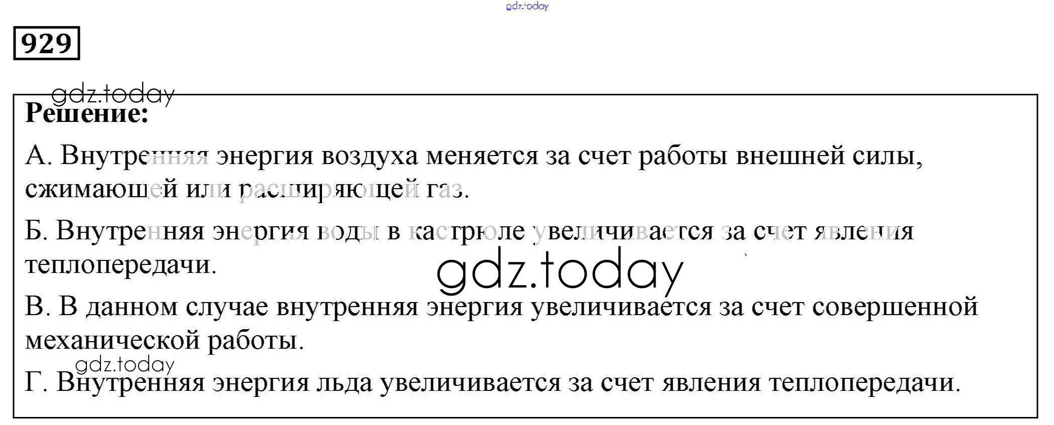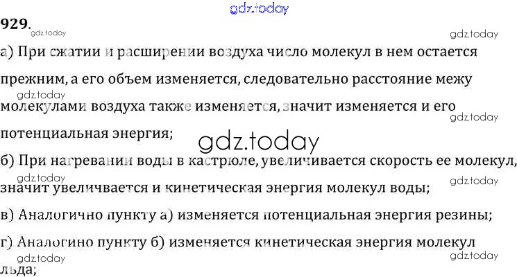 На страницах сайта gdz.today вы найдете учебный и вспомогательный материал, направленный на улучшения знаний школьной программы. ГДЗ - онлайн мир знаний Решение к заданиям 929 Сборнику задач по Физике для 7-9 класса Лукашик, Иванова Просвещение 2011