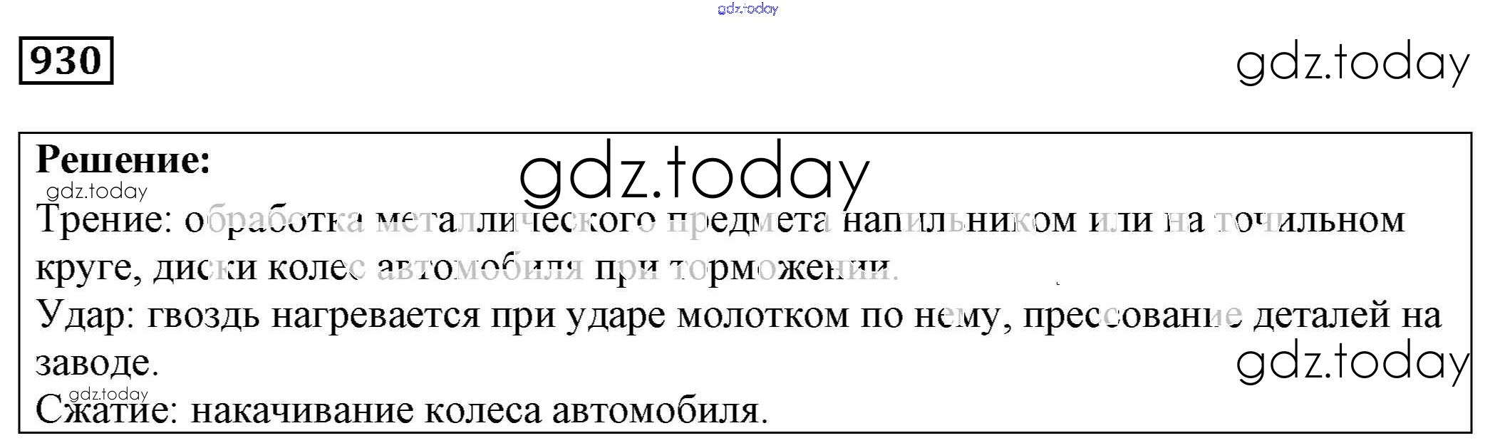 На страницах сайта gdz.today вы найдете учебный и вспомогательный материал, направленный на улучшения знаний школьной программы. ГДЗ - онлайн мир знаний Решение к заданиям 930 Сборнику задач по Физике для 7-9 класса Лукашик, Иванова Просвещение 2011