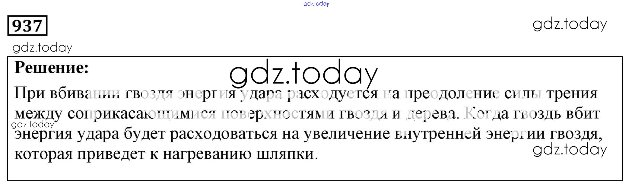 На страницах сайта gdz.today вы найдете учебный и вспомогательный материал, направленный на улучшения знаний школьной программы. ГДЗ - онлайн мир знаний Решение к заданиям 937 Сборнику задач по Физике для 7-9 класса Лукашик, Иванова Просвещение 2011