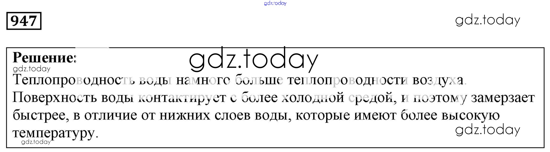 На страницах сайта gdz.today вы найдете учебный и вспомогательный материал, направленный на улучшения знаний школьной программы. ГДЗ - онлайн мир знаний Решение к заданиям 947 Сборнику задач по Физике для 7-9 класса Лукашик, Иванова Просвещение 2011