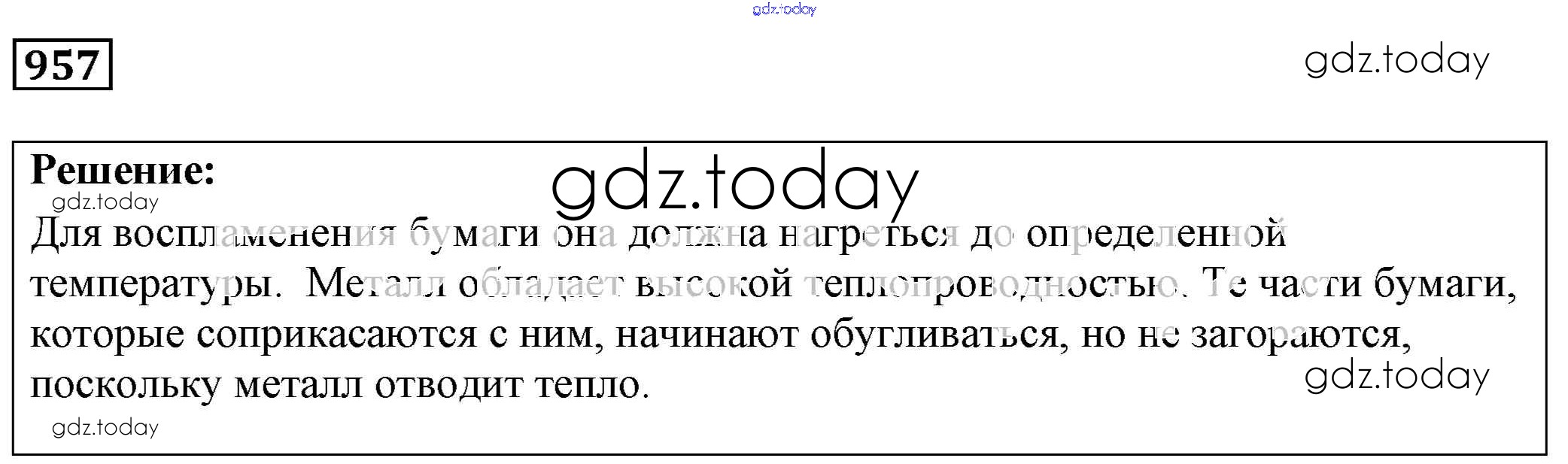На страницах сайта gdz.today вы найдете учебный и вспомогательный материал, направленный на улучшения знаний школьной программы. ГДЗ - онлайн мир знаний Решение к заданиям 957 Сборнику задач по Физике для 7-9 класса Лукашик, Иванова Просвещение 2011