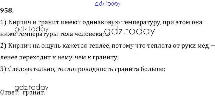 Ответы к Решение к заданиям 958 Сборнику задач по Физике для 7-9 класса Лукашик, Иванова Просвещение 2011