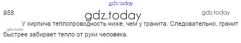 На страницах сайта gdz.today вы найдете учебный и вспомогательный материал, направленный на улучшения знаний школьной программы. ГДЗ - онлайн мир знаний Решение к заданиям 958 Сборнику задач по Физике для 7-9 класса Лукашик, Иванова Просвещение 2011