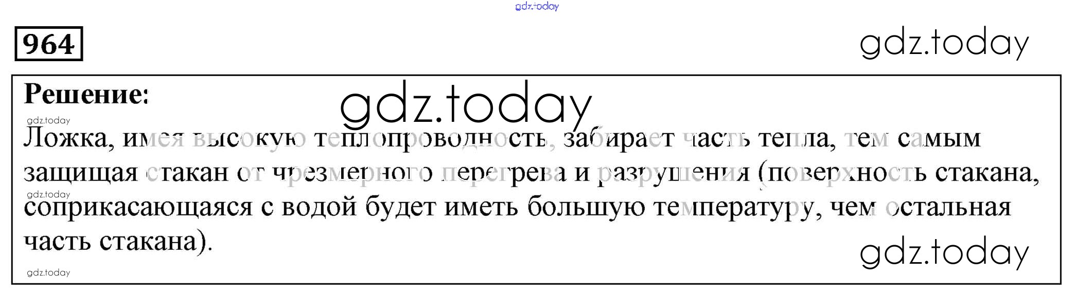 На страницах сайта gdz.today вы найдете учебный и вспомогательный материал, направленный на улучшения знаний школьной программы. ГДЗ - онлайн мир знаний Решение к заданиям 964 Сборнику задач по Физике для 7-9 класса Лукашик, Иванова Просвещение 2011
