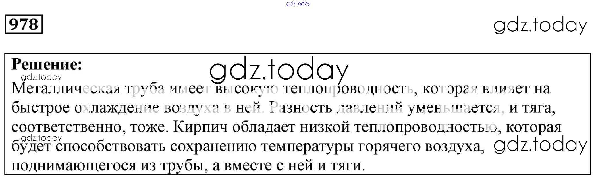 На страницах сайта gdz.today вы найдете учебный и вспомогательный материал, направленный на улучшения знаний школьной программы. ГДЗ - онлайн мир знаний Решение к заданиям 978 Сборнику задач по Физике для 7-9 класса Лукашик, Иванова Просвещение 2011