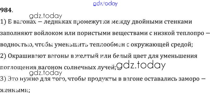 На страницах сайта gdz.today вы найдете учебный и вспомогательный материал, направленный на улучшения знаний школьной программы. ГДЗ - онлайн мир знаний Решение к заданиям 984 Сборнику задач по Физике для 7-9 класса Лукашик, Иванова Просвещение 2011