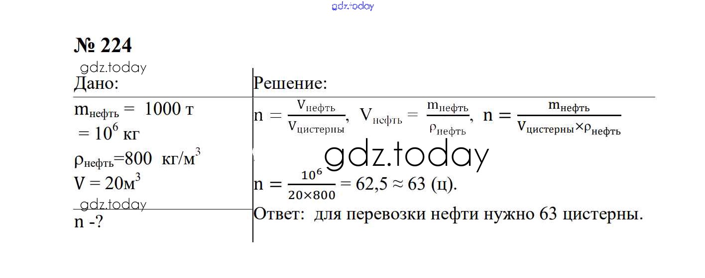 Ответы к Взаимодействие тел Решение. 7 класс 224 Сборнику задач по Физике для 7-9 класса Перышкин, Лонцова Экзамен УМК 2016